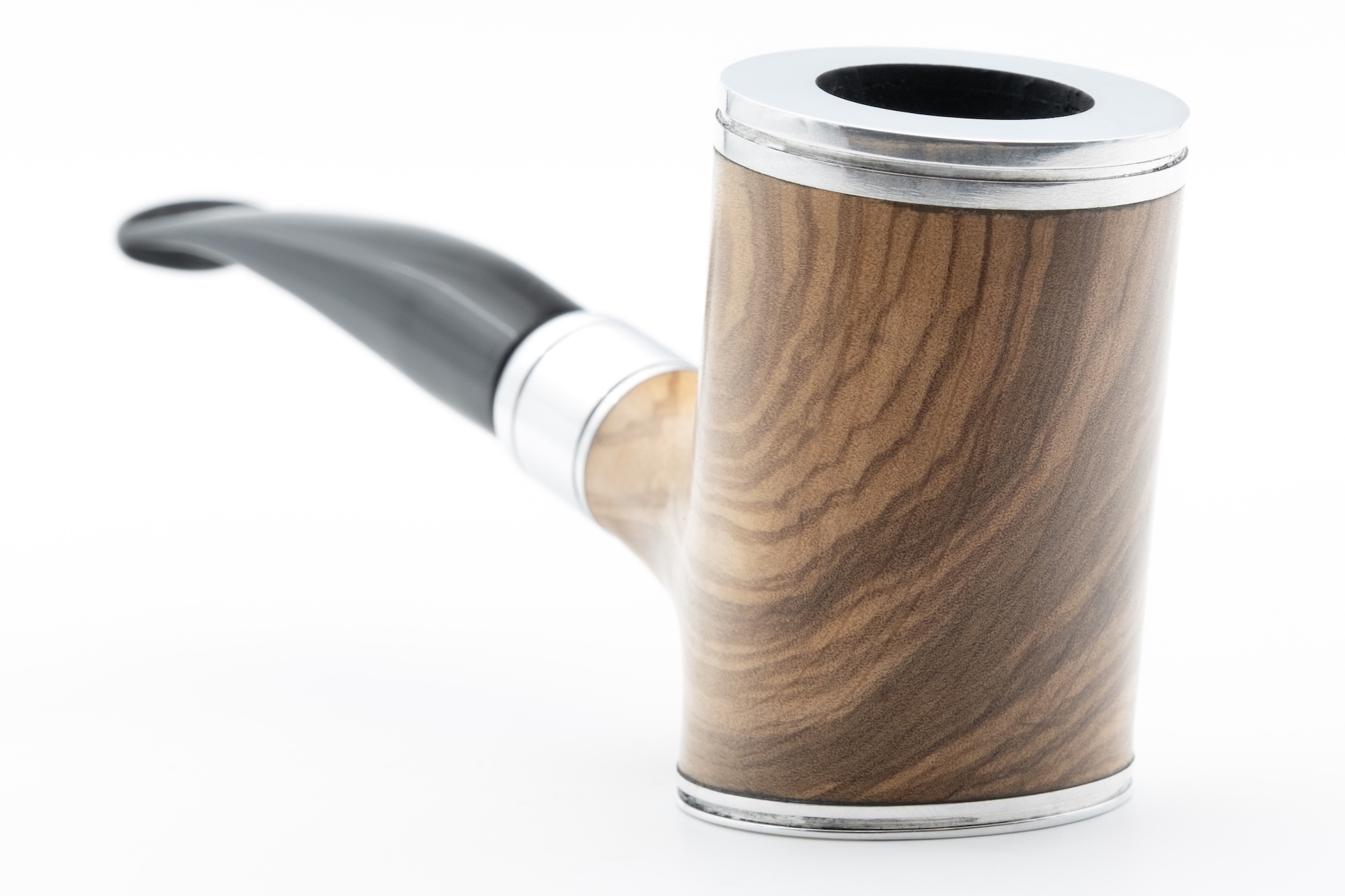 Doch gemäß der japanischen Kaizen-Lehre, die stets auf die Verbesserung eines Produkts abzielt, haben wir diese Olivenholzpfeife nun erneut weiterentwickelt: Sie ist mit einer hochwertigeren Applikation am Holm ausgestattet und verfügt über einen neu gestalteten Aluminiumdeckel.